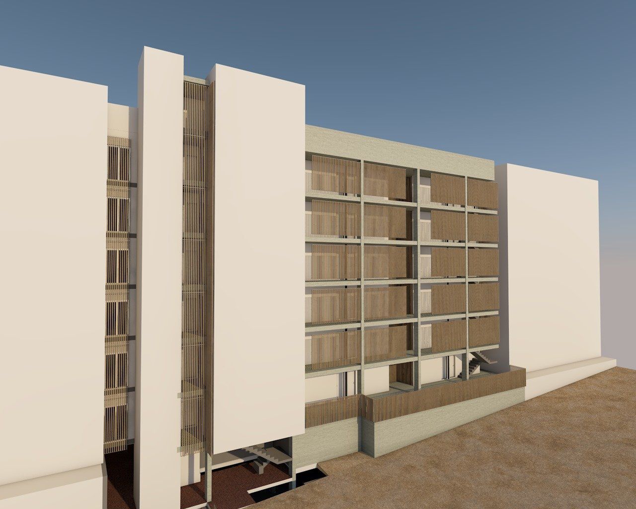 El projecte intenta optimitzar el procés constructiu i l'ús del formigó proposant un forjat unidireccional col.laborant i una mínima capa de compressió, estalviant així les emissions. Estructura regular amb llums de 5.5 metres, que permeten allotjar còmodament 2 estances als habitatges i 2 places a l'aparcament. Materials sostenibles i reciclables Ús de fusta natural en els tancaments dels habitatges, així com en paraments de terrasses,accessos i espais comuns. Ús de materials reciclats (paviments de formigó d'arids reciclats). Construcció de particions en sec.